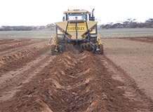 - Addition of amendments and organic matter directly into trench with spreader • straddling the row